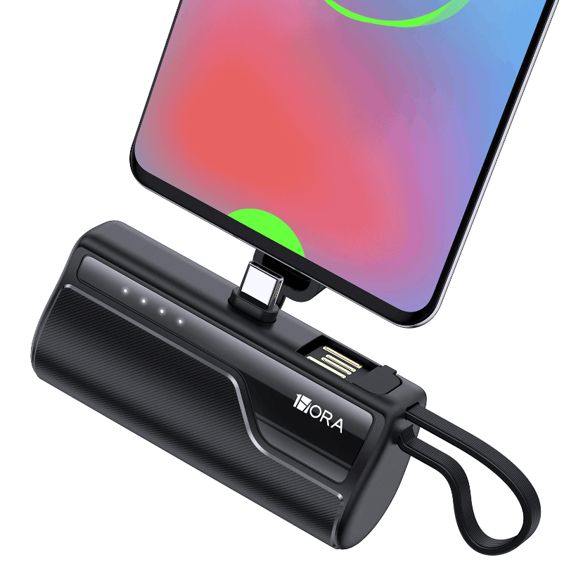 La mini batería portatil 4500mah tiene un cable Tipo C integrado, lo que significa que no es necesario conectar cables separados y puede soportar fundas de teléfonos. Ya no es necesario quitar la funda del teléfono para cargarlo. Además, el power bank proporciona carga rápida verdadera a los dispositivos externos con una potencia máxima de 12 W.