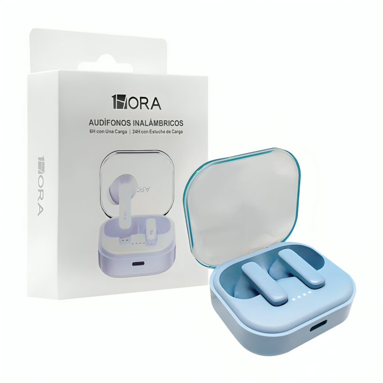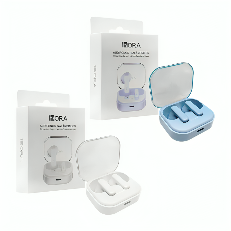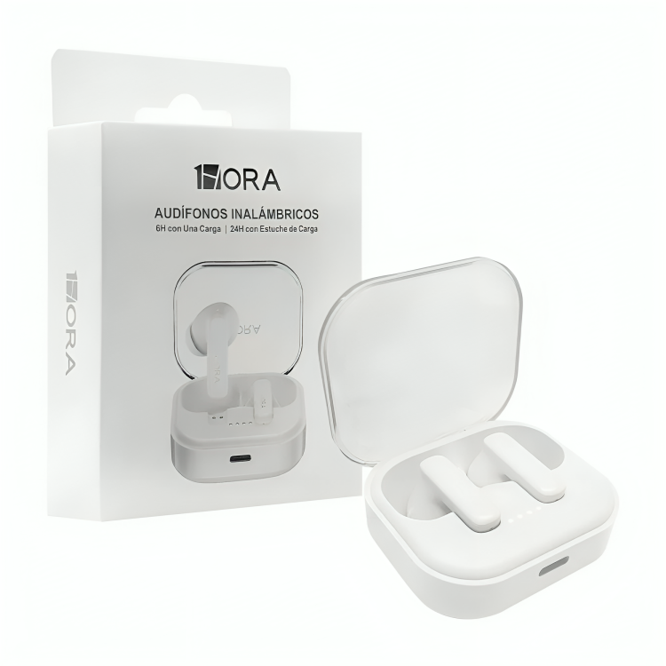 Sistema de audio inalámbrico tipo TWS diseñado para reproducción estéreo y comunicación manos libres en entornos móviles. Integran conectividad Bluetooth 6.0 para enlace estable, baja latencia y optimización energética, junto con estuche de carga portátil con tapa transparente en policarbonato que permite visualización directa del estado físico de los auriculares. Su autonomía de hasta 6 horas por ciclo y 24 horas acumuladas mediante estuche los posiciona como solución eficiente para uso continuo en trabajo, traslado o actividad física ligera.