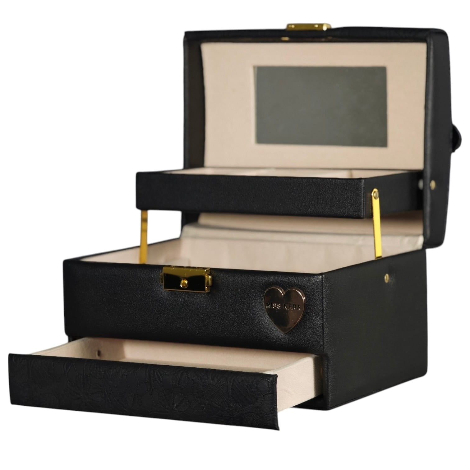 Organiza tus joyas con elegancia y practicidad. Este estuche sofisticado mantiene tus accesorios protegidos y al alcance de tu mano. Diseñado con compartimentos especializados, permite guardar anillos, collares, pulseras y aretes de manera ordenada y segura. Su acabado refinado lo convierte en una pieza decorativa que realza cualquier espacio. Ideal para viajes o uso diario, combina funcionalidad con estilo impecable.