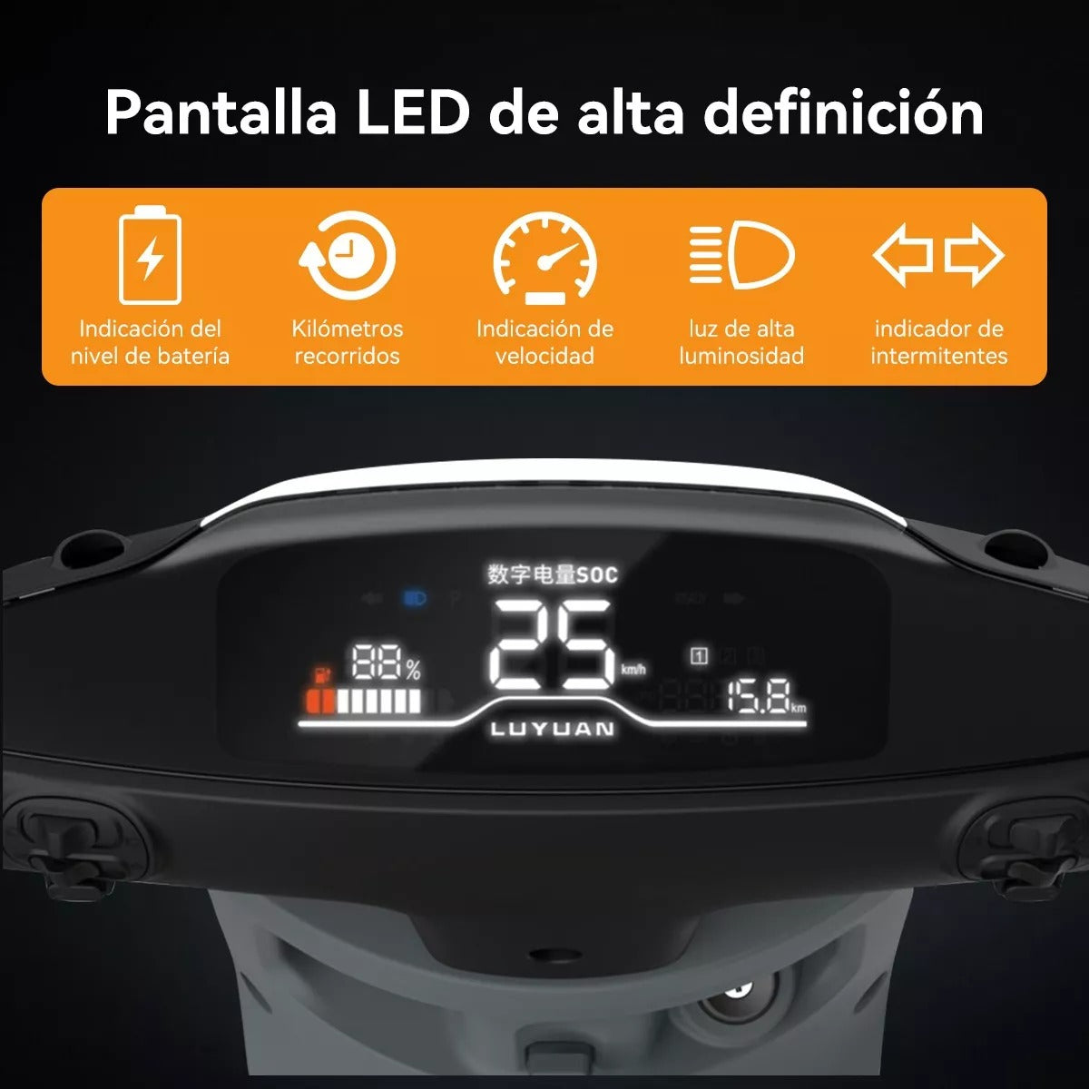 Dispone de manillar fijo con pantalla para que puedas ver cuánta batería queda, luces LED delanteras para ayudarte a ver la carretera por la noche, intermitentes LED para que otros ciclistas puedan verte preparándote para girar y un indicador preciso de batería SOC para que puedas ver cuánta energía queda en tiempo real, de modo que no tengas que preocuparte por quedarte sin energía durante el trayecto.