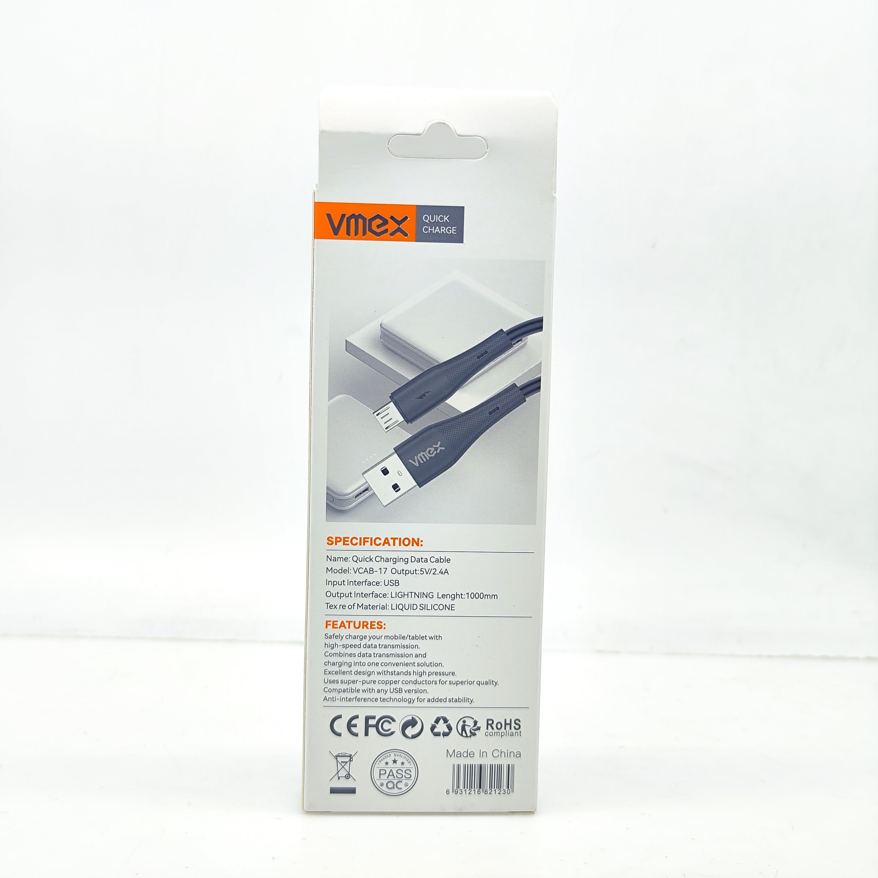 Nombre: Cable de datos de carga rápida Modelo: VCAB-17 Salida: 5V/2.4A